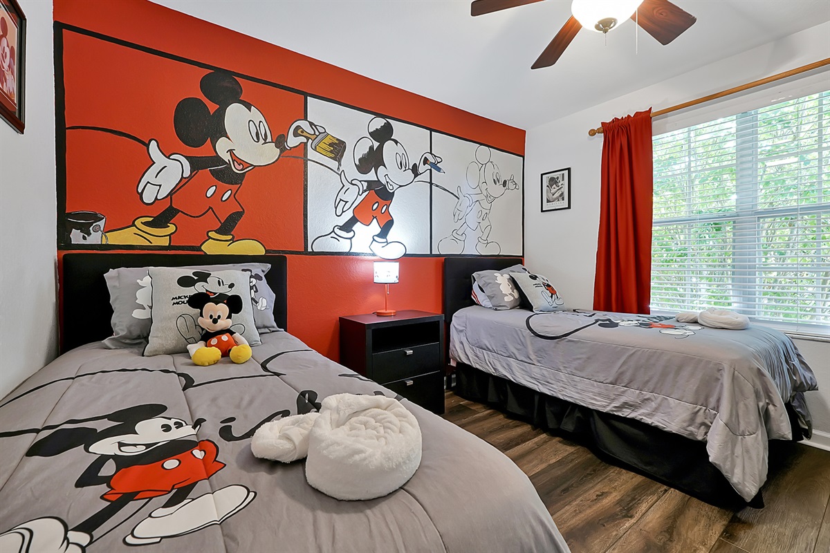-MICKEY MOUSE THEME bedroom with two twin beds